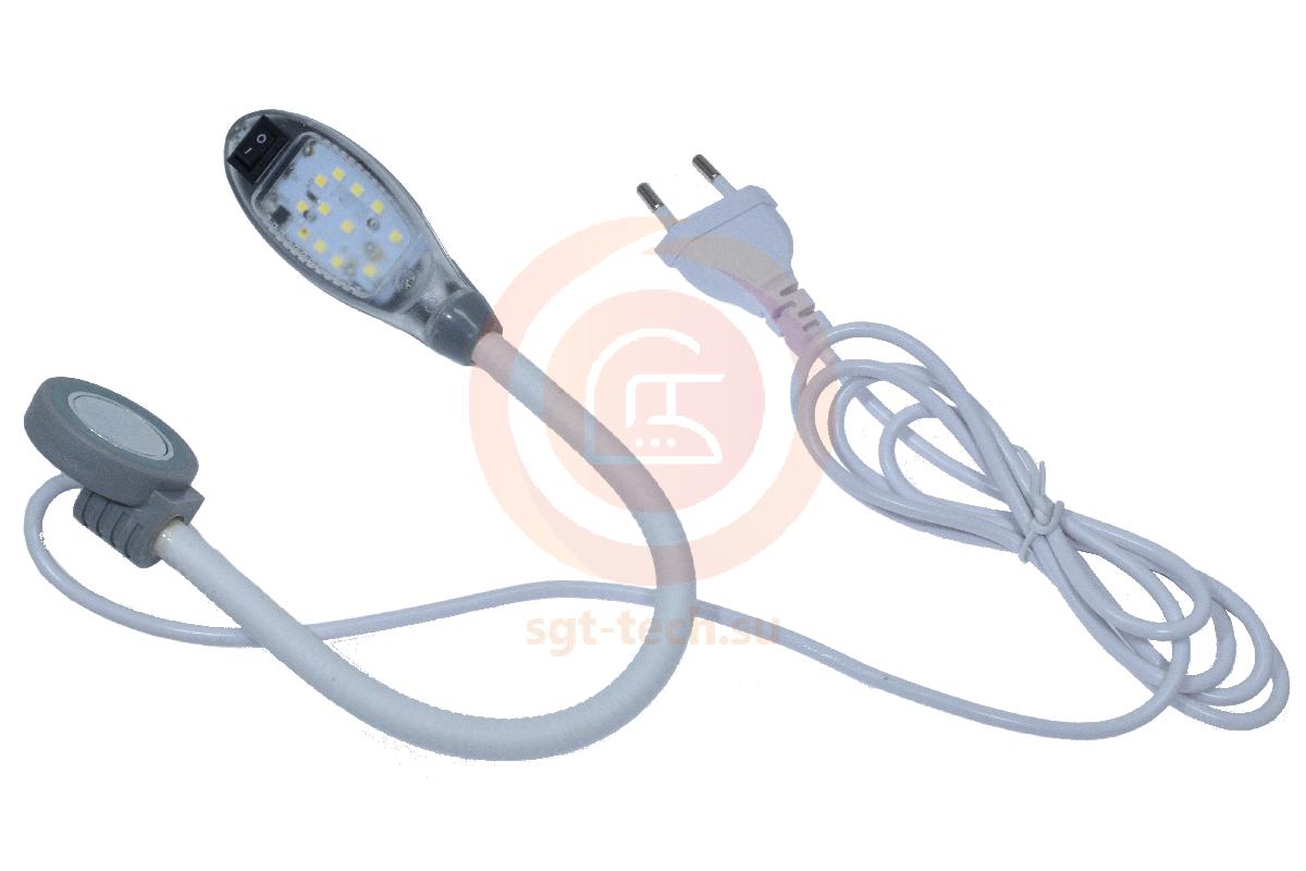 Лампа оснащена 12 светодиодами, кнопкой включения/выключения, гибкой стойкой, магнитом для крепления, вилкой для подключения в розетку.