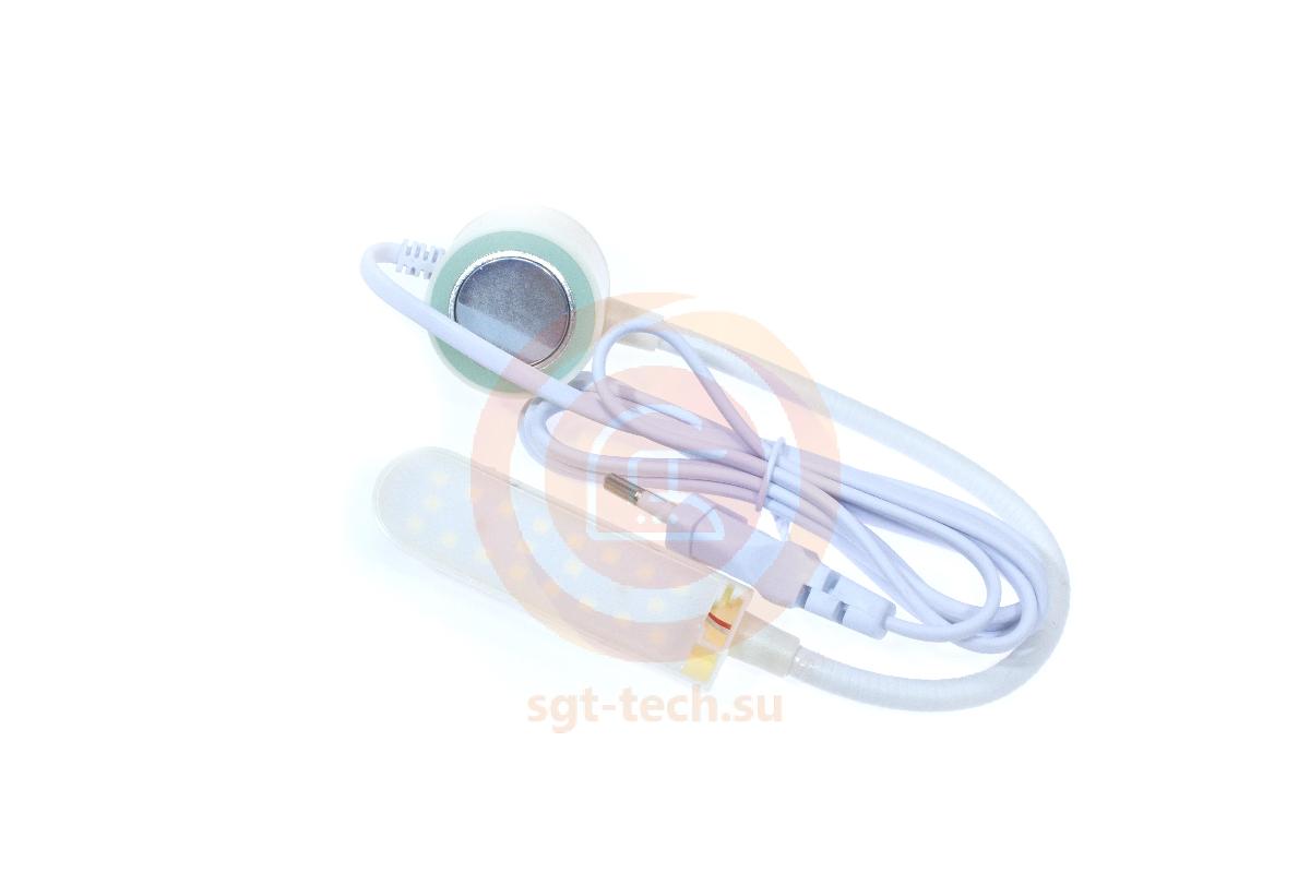 Лампа на гибкой стойке имеет кнопку включения/выключения, магнит для крепления, вилку для подключения к розетке.