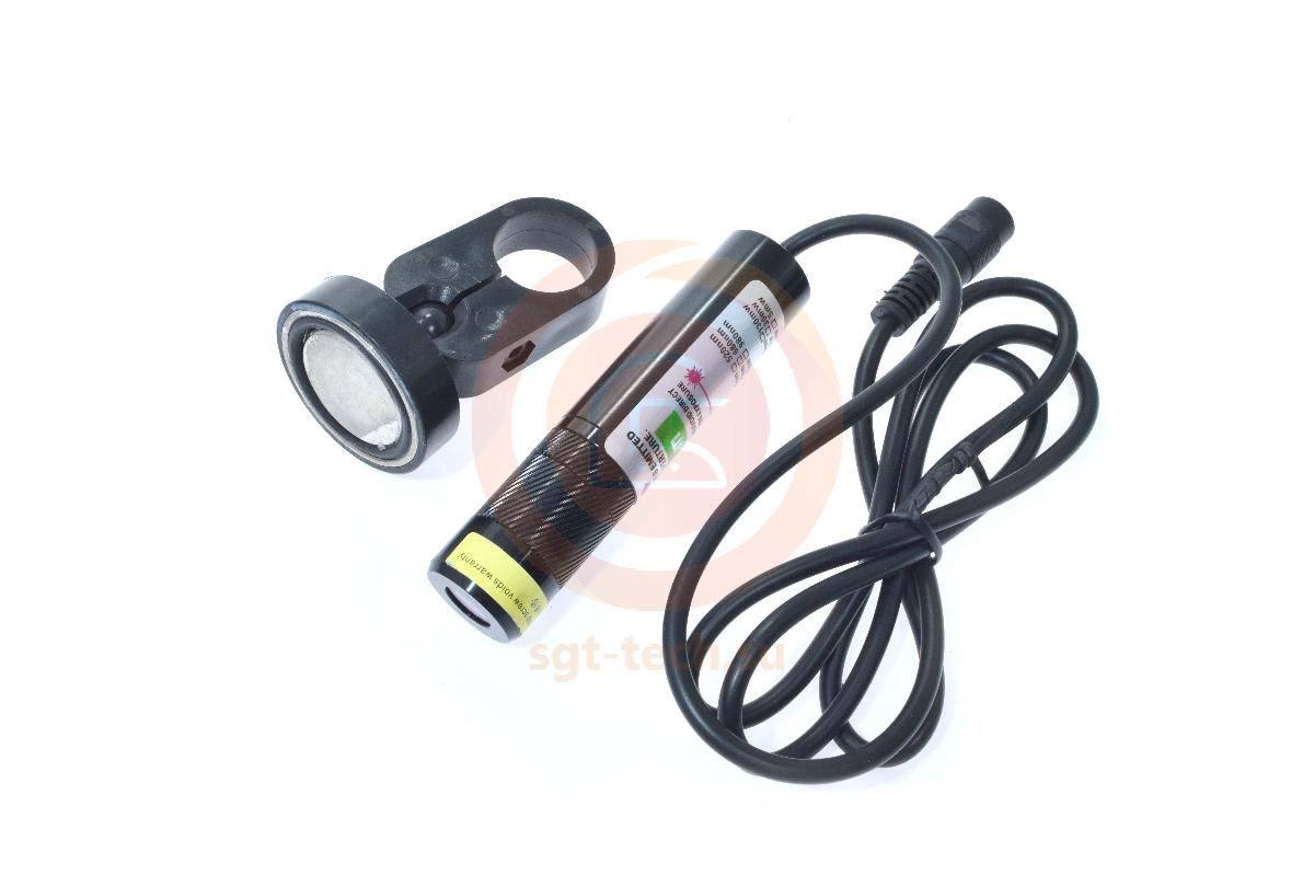Лазер идет в комплекте с подвижным держателем на магните и вилкой для подключения к розетке.